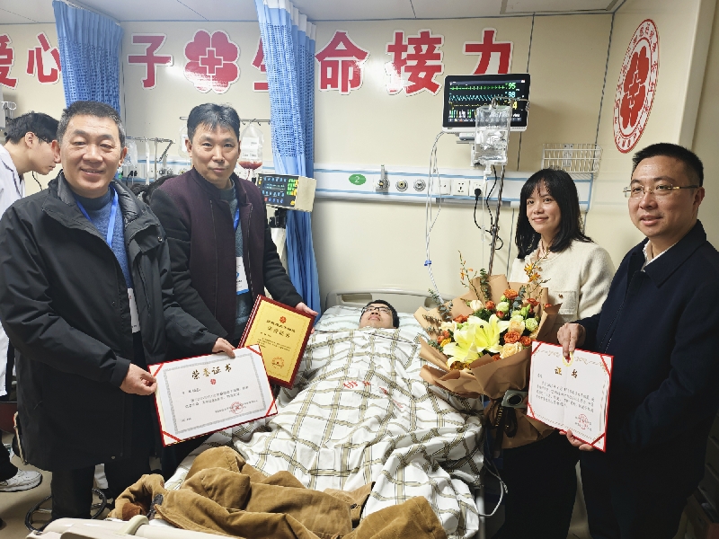 采集当日,兴业数字金融服务(上海)股份有限公司和福州市商务局领导前往协和医院看望慰问捐献者李骏和肖国升,对他们的奉献精神和大爱行为给予了高度肯定与赞赏。红十字会为捐献者颁发国家级、省级和市级荣誉证书,同时也为单位送上感谢信,对单位在捐献准备期间为员工提供的悉心帮助、保障服务和对红十字工作的大力支持表示真挚的感谢。正如信中所述,“世界因人道而美好,社会因博爱而和谐,人生因奉献而精彩。”这项生命接力,是“一群人的力所能及”共同缔造的生命奇迹。
